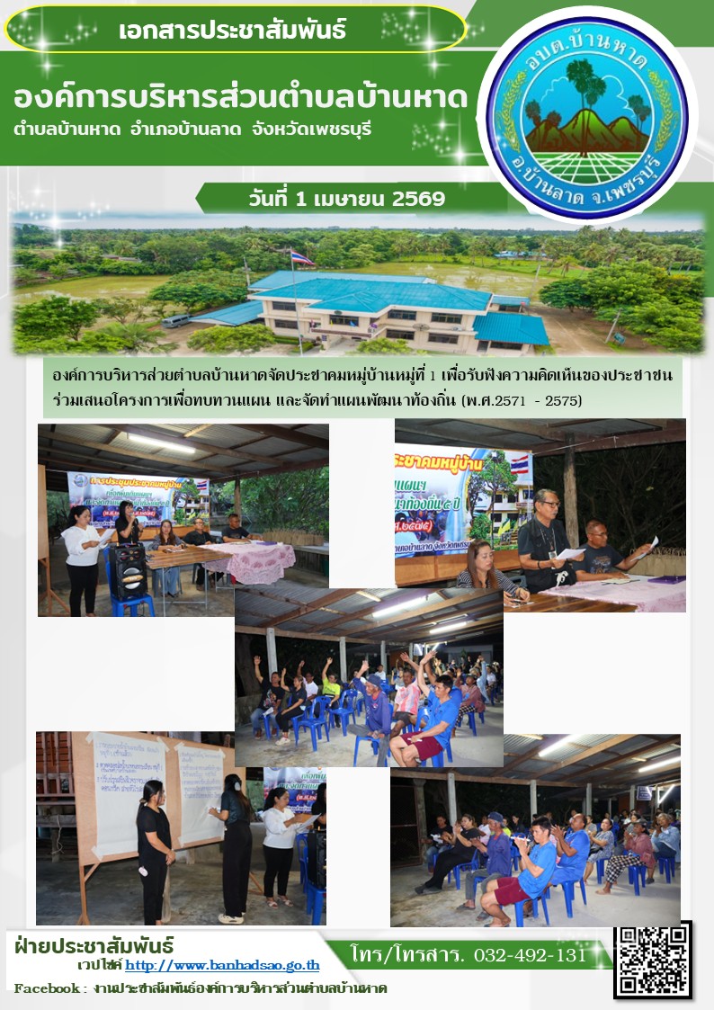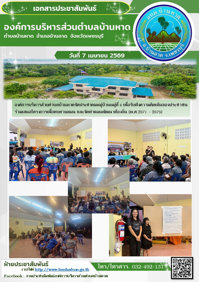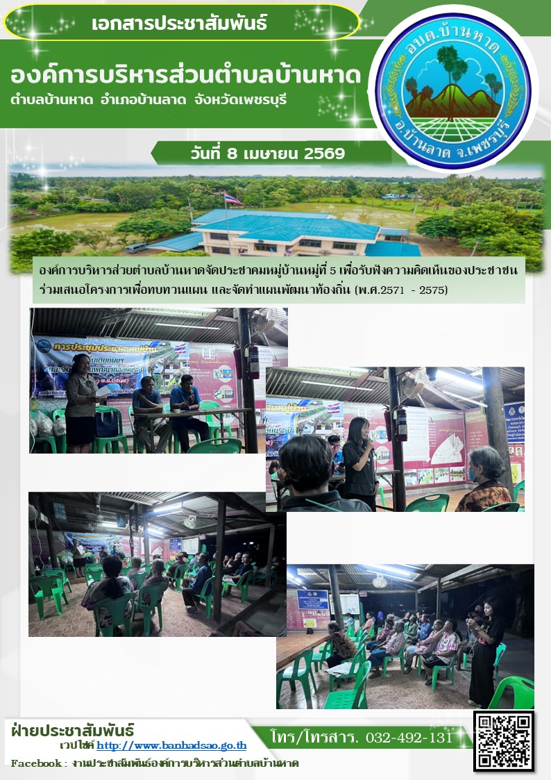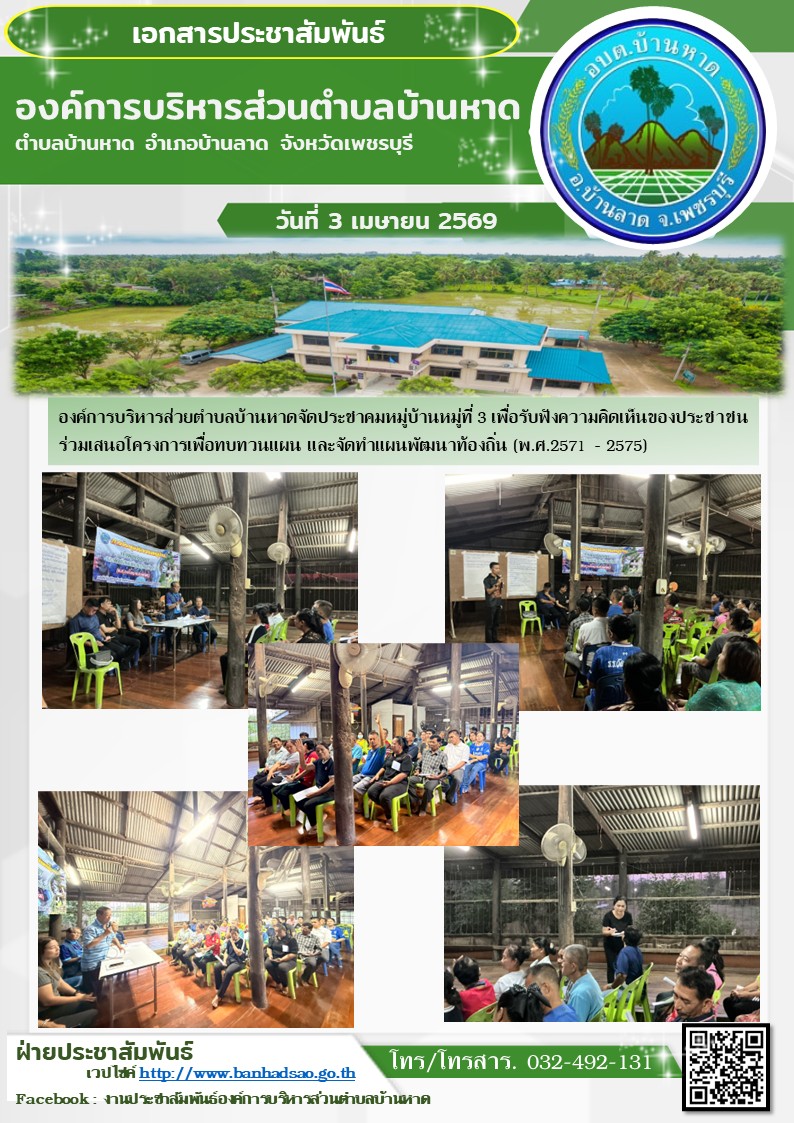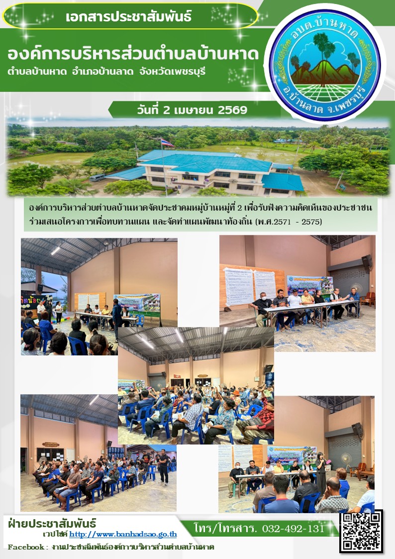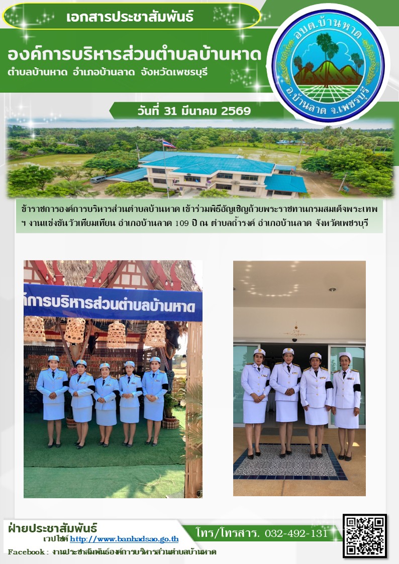 องค์การบริหารส่วนตำบลบ้านหาด จังหวัดเพชรบุรี โทร 032-492131
