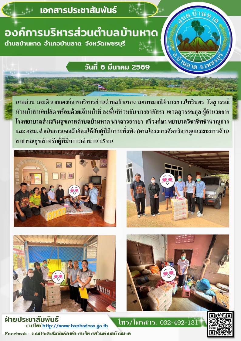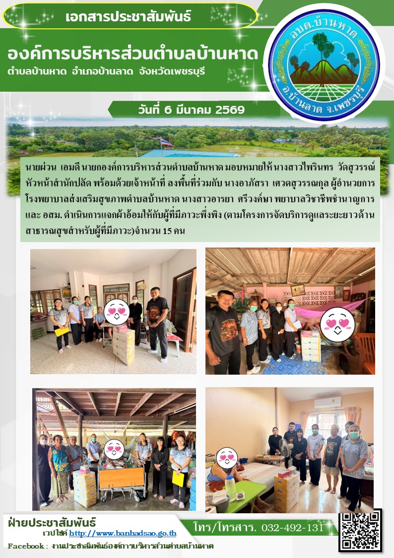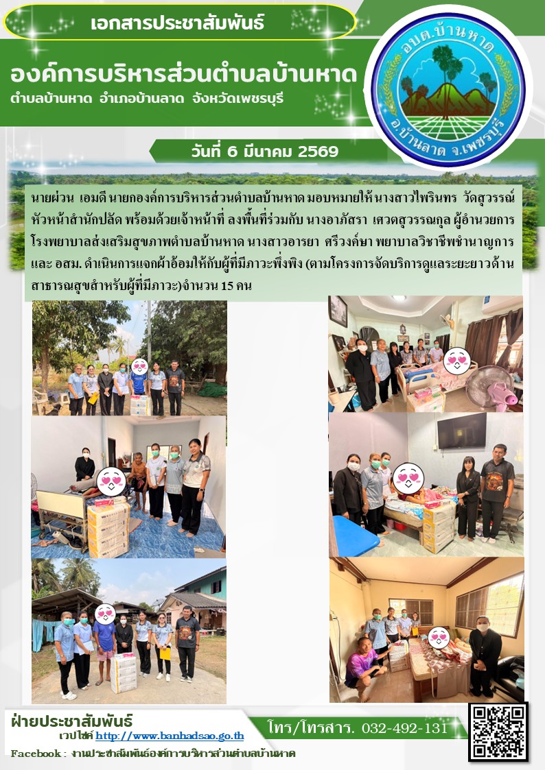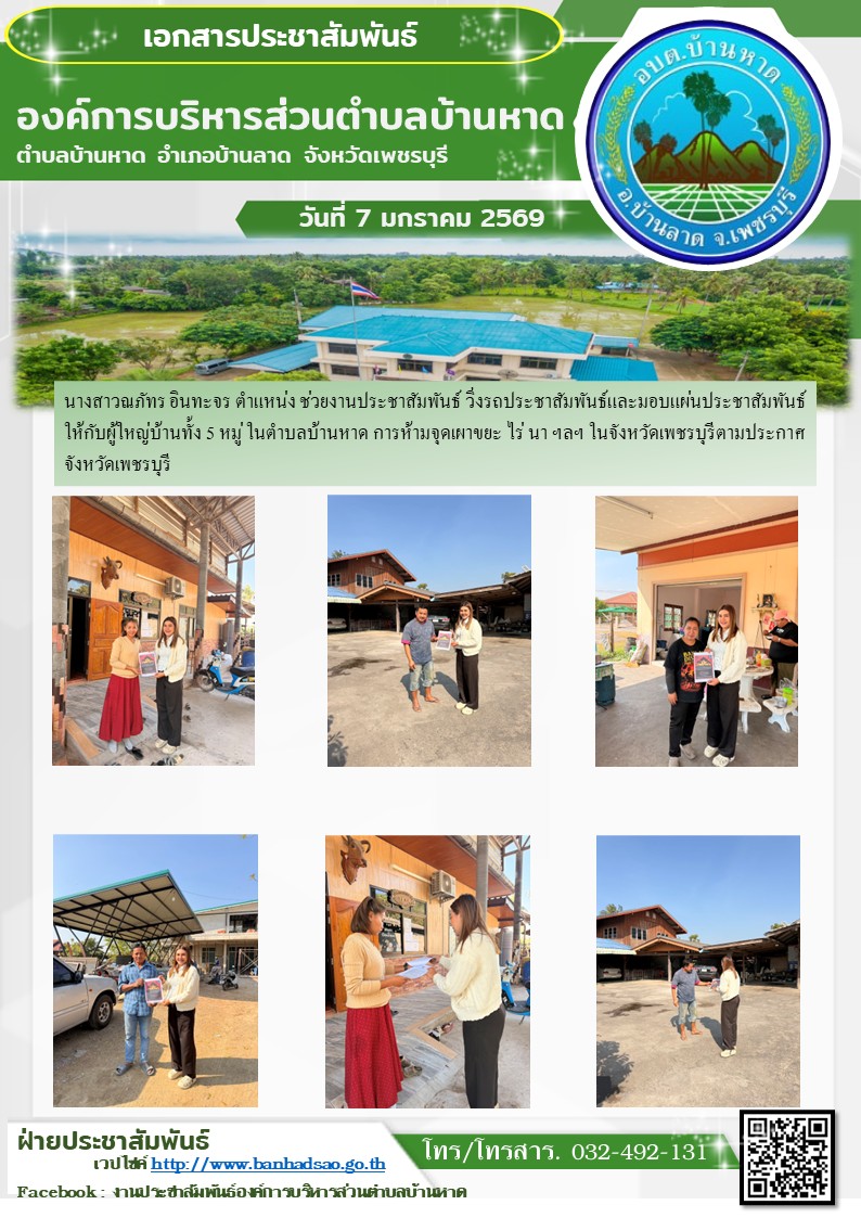 องค์การบริหารส่วนตำบลบ้านหาด จังหวัดเพชรบุรี โทร 032-492131