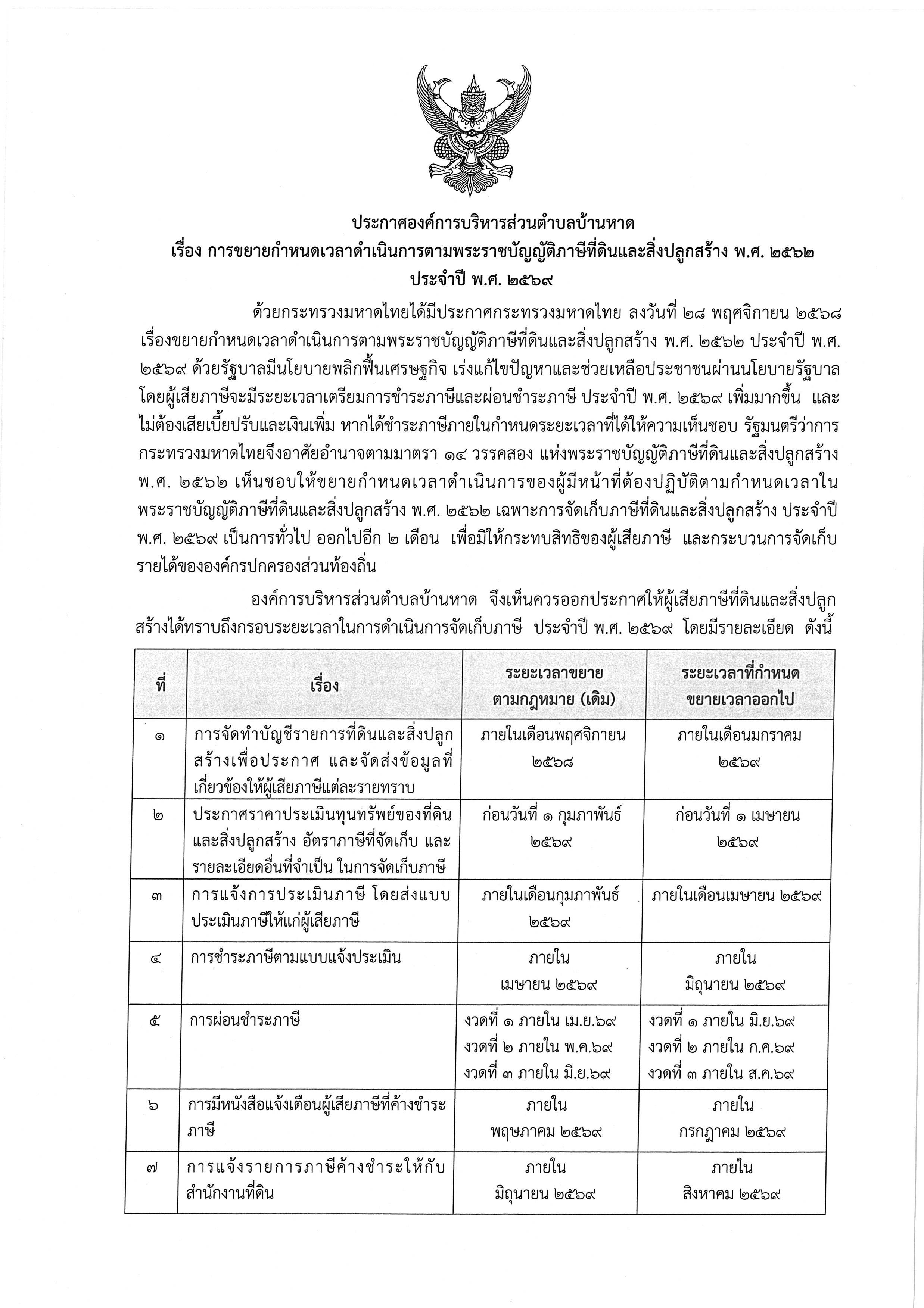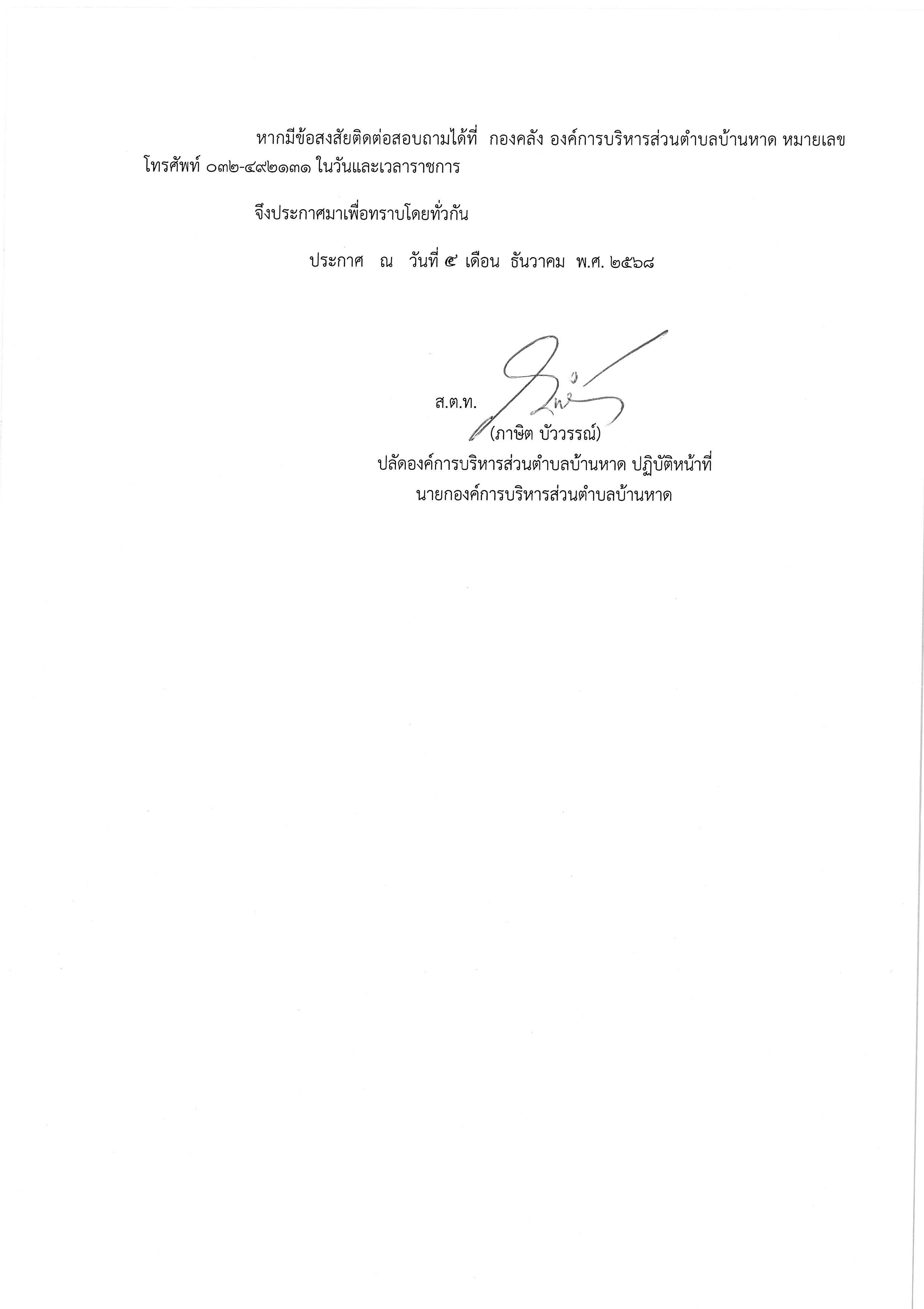 ประกาศแบบบัญชีรายการที่ดินและสิ่งปลูกสร้าง ภ.ด.ส. 3 ประจำปีงบประมาณ 2569 ท่านสามารถตรวจสอบรายการทรัพย์สิน ได้ ณ สำนักงานองค์การบริหารส่วนตำบลบ้านหาด ติดต่อ สอบถาม 032 - 492131 งานจัดเก็บรายได้